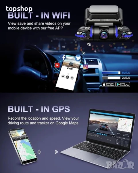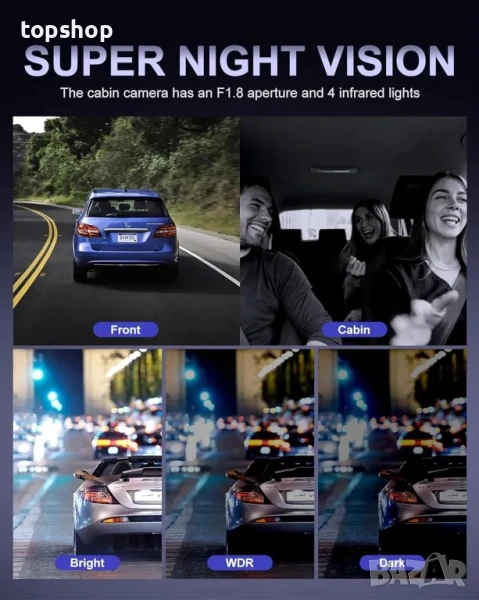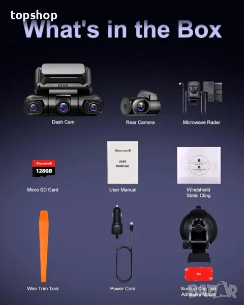 Най добрата 4-канална Даш камера Rhorawill R6, GPS WiFi, нощно виждане, 128GB Карта, ПРОМОЦИЯ
