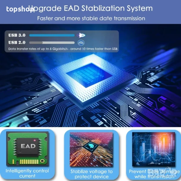 DVD плейърът Antika използва технологията EAD, интелигентно контролира тока, за да защити това устройство и компютър, предотвратявайки неизправност поради нестабилно напрежение. USB 3.0, високоскоростен интерфейс тип C, осигурява по-стабилно и по-бързо предаване на данни скорост (до максимум 5Gbps)