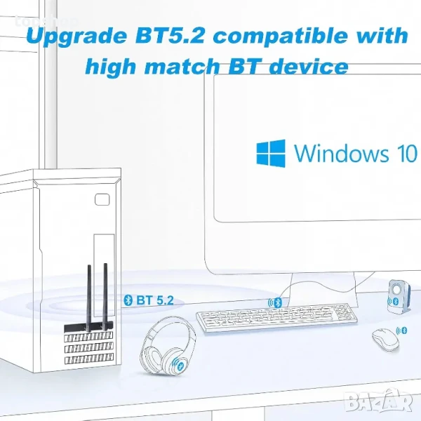 【Технология Bluetooth 5.2】Получете по-високи скорости и по-широко покритие от Bluetooth 4.2. PCIe адаптерът предлага мощна безжична връзка за данни между вашия компютър и устройства с Bluetooth, като слушалки, мишка, клавиатура, високоговорител, мобилен телефон и други, позволявайки безпроблемна връзка, по-добра производителност и непрекъснат работен процес.