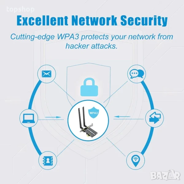 【Широка съвместимост】PCIE Gigabit AX1800 Mbps мрежов адаптер, съвместим с Windows 10/11, Windows Server (32/64 бита). Не е за система Windows Vista. Работи с PCI-E X1, X4, X8 и X16 слотове. Нископрофилен и стандартен вътрешен профилен монтаж, работи както с mini, така и със стандартен.