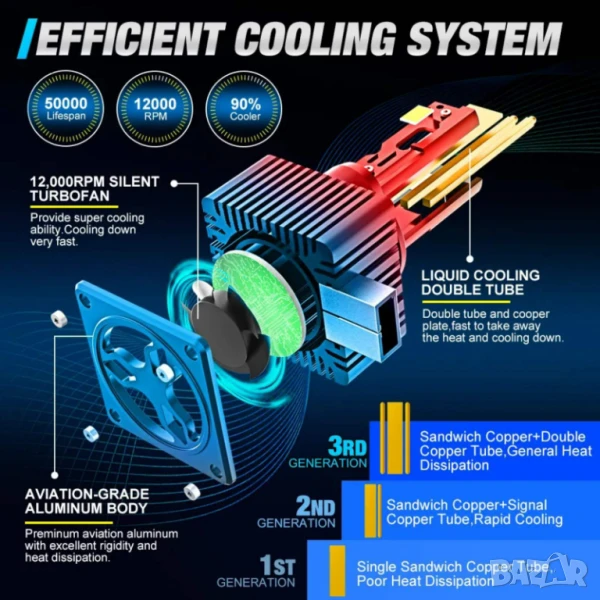 Снабдени с интелигентна охлаждаща система с вграден вентилатор, която осигурява оптимална температура и дълъг живот. Вградената антисмущаваща технология гарантира стабилна работа, без да пречи на електрониката на автомобила.