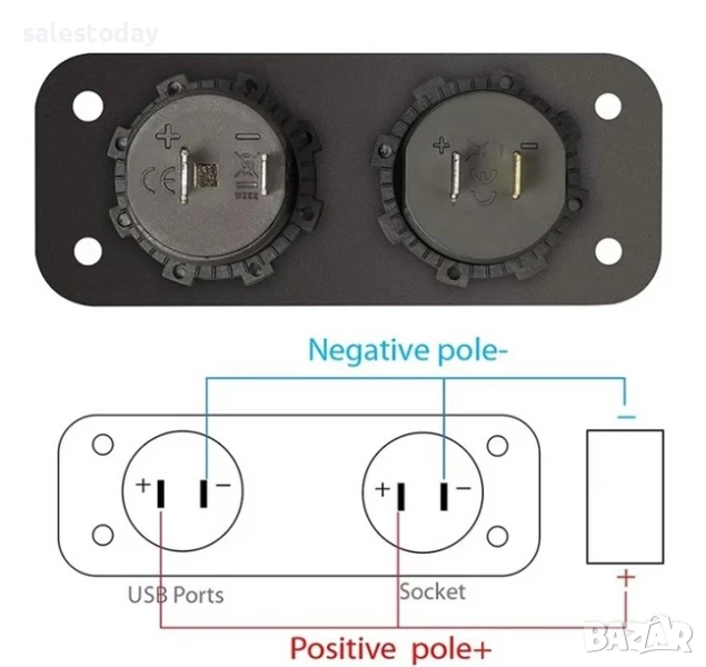 Универсален Панел за вграждане табло с 2бр USB зарядно 4.2А с 12V изход гнездо за запалка за кола камион каравана лодка и др.