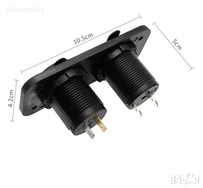 Включва гнездо за запалка на автомобила, двойно USB 2.1A / 5V зарядно.