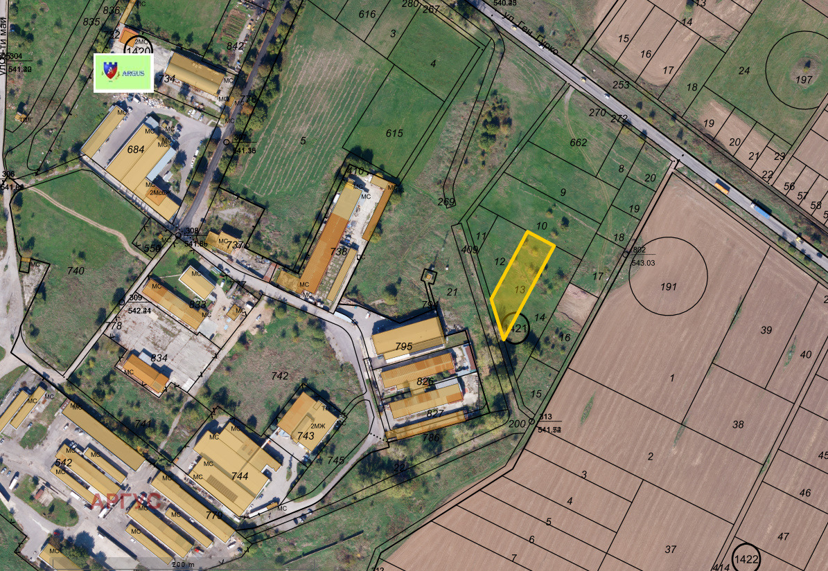 Агенция 'АРГУС' продава изключително переспективен имот в складово - промишлената зона на с. Бусманци /бившият стопански двор/. Териториално, той се намира в источния край на зоната, 4-та редица навътре от ул.'Ген. Гурко'. За промишлената зона има удобрена улична регулация, която в този участък фгизически не е приложена. Имотъ има лице 35 м. към бъдещата улица. Той попада в устройствена зона Пмс - промишлена зона за малки и средни предприятия с показатели 50% плътност на застрояване и Кинт 1.5.