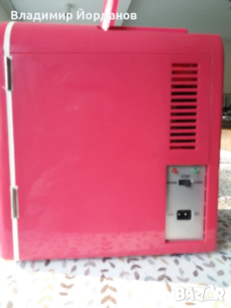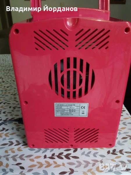 Мини бар охладител за автомобил Prettypink model LY0204B, захранване 12V, с две функции охлаждане /консумация 40-45W и при затопляне /32-36W/. Външни размери широчина 19 см, дълбочина 25 см и височина 27 см. Съответно вътрешните са 14х14х21 см. Вместимостта му е 6 кена или 4 литра алтернативни продукти. Захранва се от акумулатора на автомобила. Много запазен и полезен по време на път или къмпингуване.