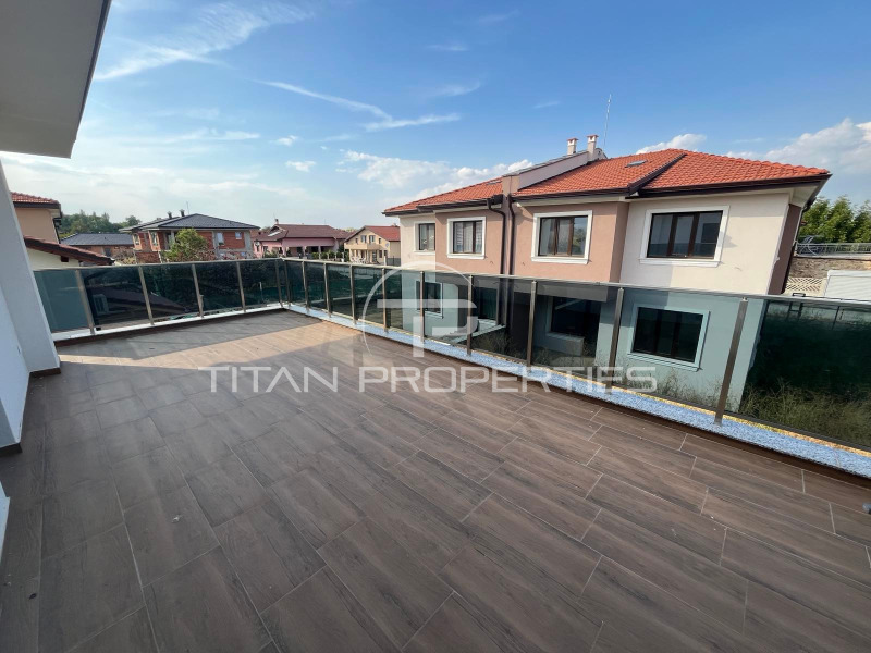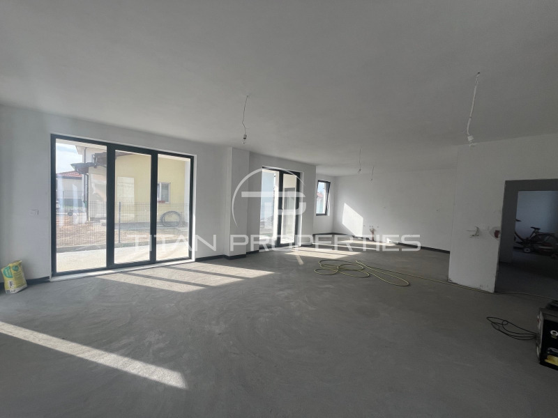 Къщата е ситуирана на два етажа и разполага с обща площ 290 кв.м., разгърната по следния практичен начин: 1-ви етаж: коридор,просторна дневна с кухнески бокс, кабинет,баня с тоалетна,килер; 2-ри етаж: спалня с баня и тоалетна,две спални,баня с тоалетна,голяма тераса. Имтът е самостоятелен, на шпакловка и замазка се предлага , изградено подово отопление, паркоместа в двора.