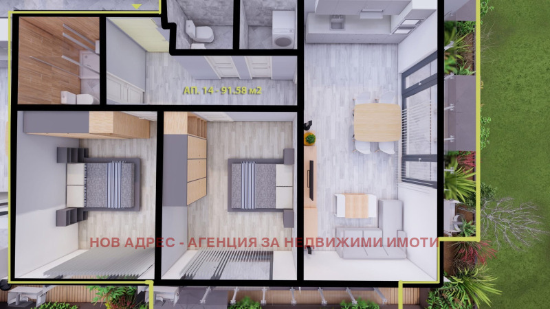 Към обявата са приложени примерни визуализации на помещенията, изготвени с реални размери, с цел по-добра представа за потенциала на апартамента.