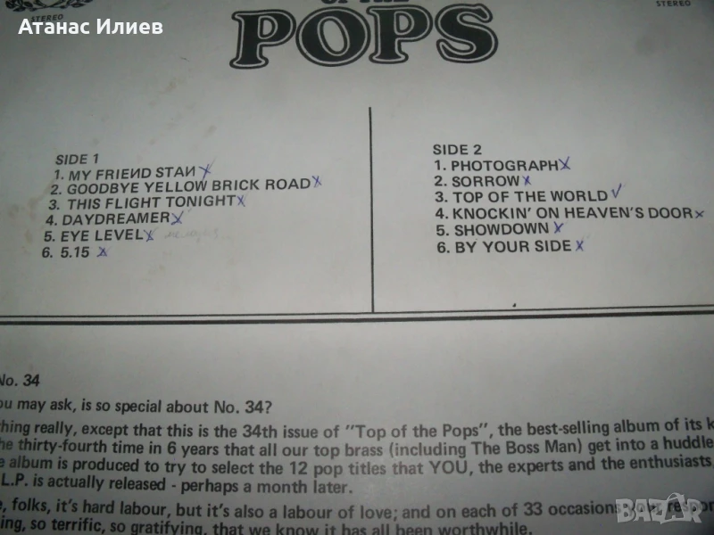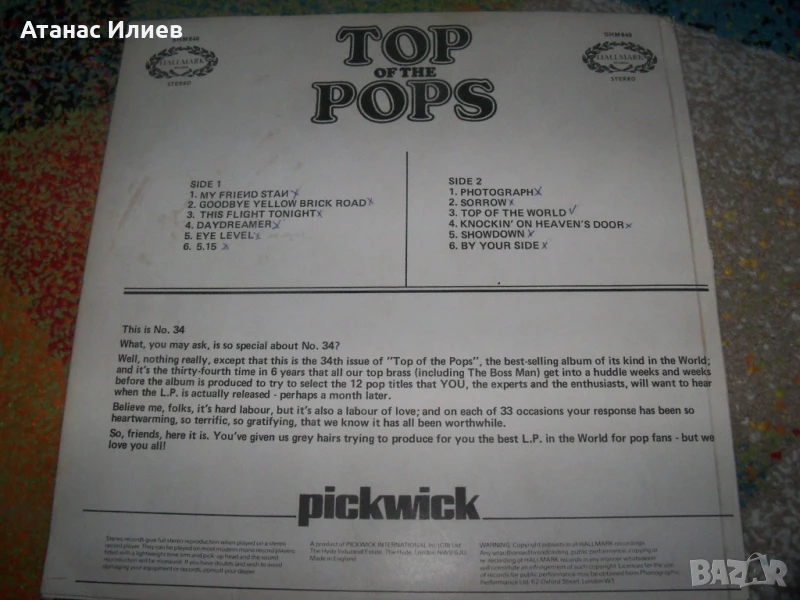 Top Of The Pops Volume 34. Плочата е прослушана и е в отлично състояние. Забележки по обложката.