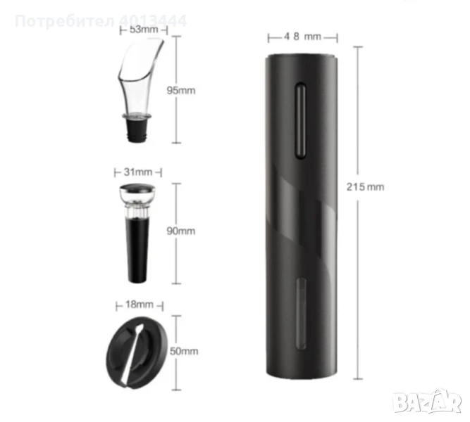 1. Електрически тирбушон с 4 броя батерии ( не са включени в комплекта)
