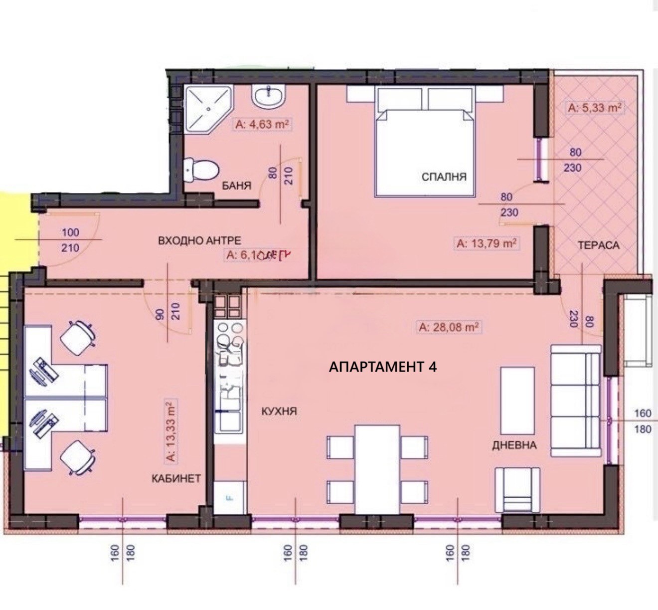 ✅ Разпределение: просторна дневна с кухненски бокс, две самостоятелни спални, баня с тоалетна, отделна тоалетна, коридор и тераса