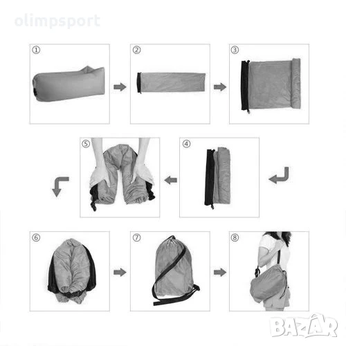 2. Леглото има две въздушни камери. Задръжте една от двете въздушни камери широко отворена и направете няколко много бързи стъпки, за да може въздухът да влезе в нея, след което бързо я затворете. Повторете същото действие с другата камера. Камерите трябва да са пълни около 70% с въздух, за да може, когато ги затворите, леглото да е максимално надуто.