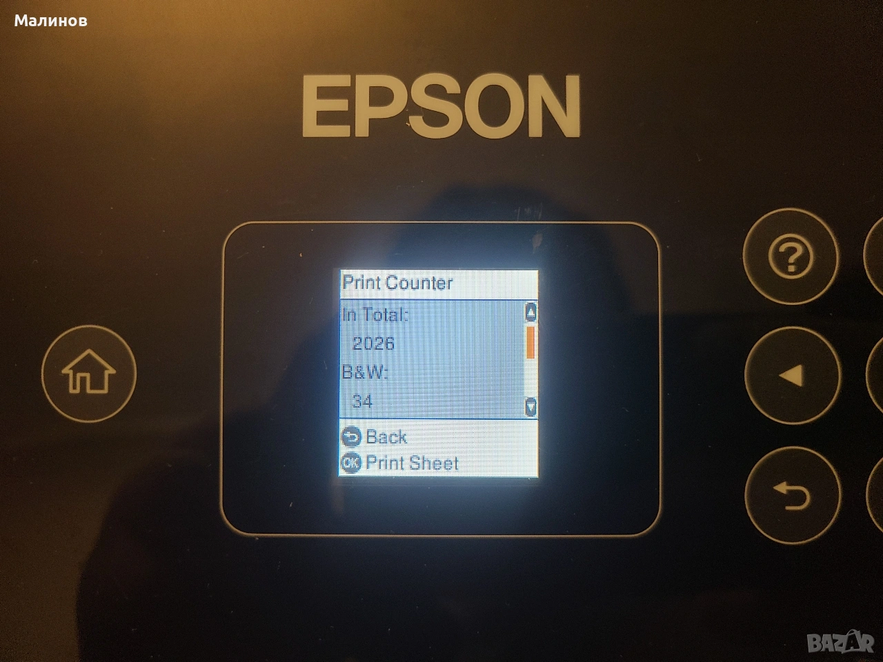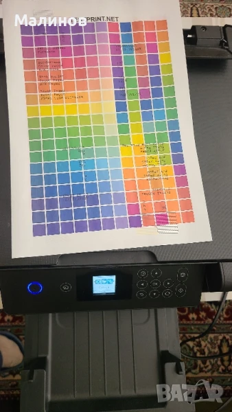 Принтерът е чисто нов, мострена машина на едва 2040 копия, видно от тестовата страница, налят с мастило. Машината е от типа 3 в 1 - принтер, скенер, копир.