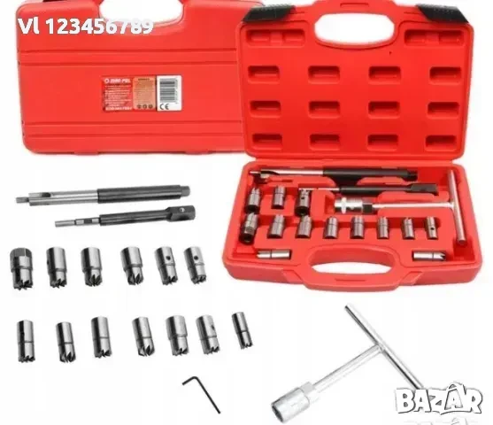 Предлага се с 13 различни фрези, които стават за повечето дизелови автомобили. T-образният ключ в комплекта е от хром ванадий.