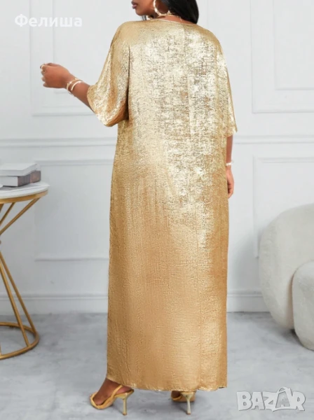 Свободната, широко скроена кройка пасва на разнообразни женски силуети, подчертавайки естествената красота и създавайки излъчване на стил и грация. Тази рокля е идеалният избор както за ежедневието, така и за специални поводи, където желаете да блестите с изтънченост и класа.