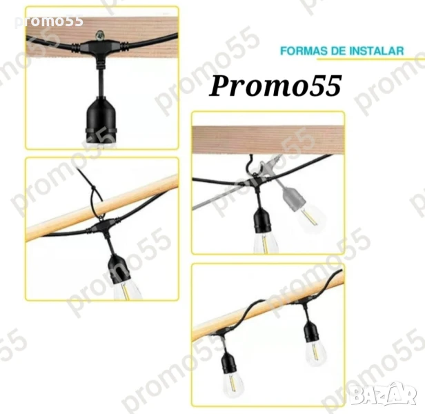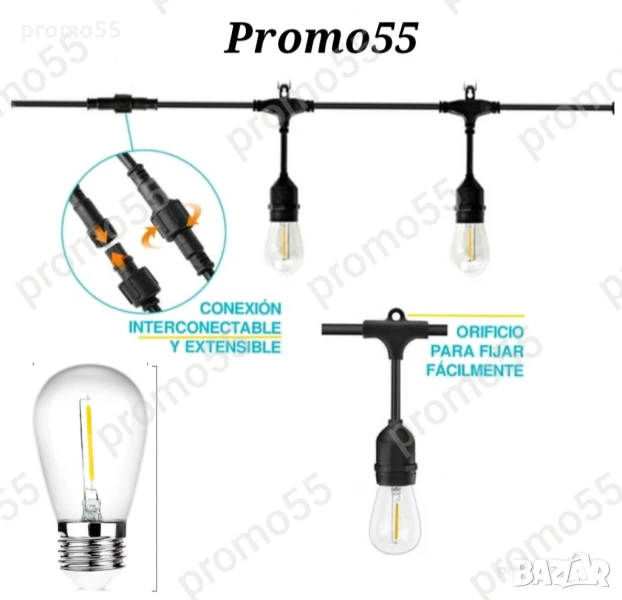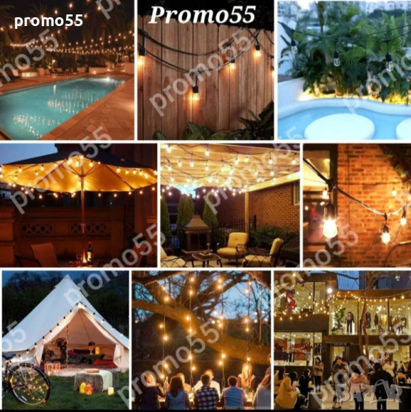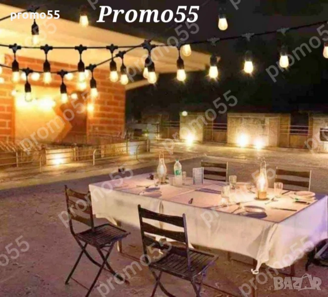 Външна светлина от 20 енергоспестяващи лед крушки в топло бял цвят, гирлянд от парти лампички нанизани през 50см. на кабел с дължина 10м. Могат да се навържат, снаждат и така се образува светлинна верига дълга до толкова колкото е необходимо.