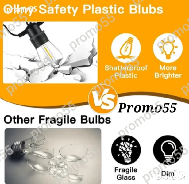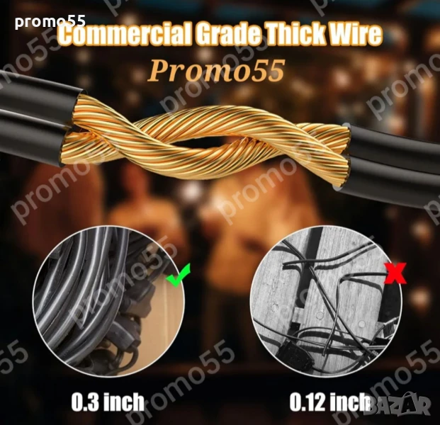 Светлините са изработени от висококачествени материали и водоустойчива технология, безопасни, гъвкави и практични, за да отговорят на нуждите от осветление и декорация на различни поводи. Външните висящи светлини имат 20 нечупливи крушки и са лесни за носене.