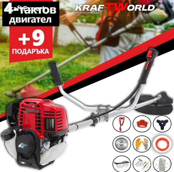 Четиритактов Бензинов Тример на KraftWorld + 9 ПОДАРЪКА