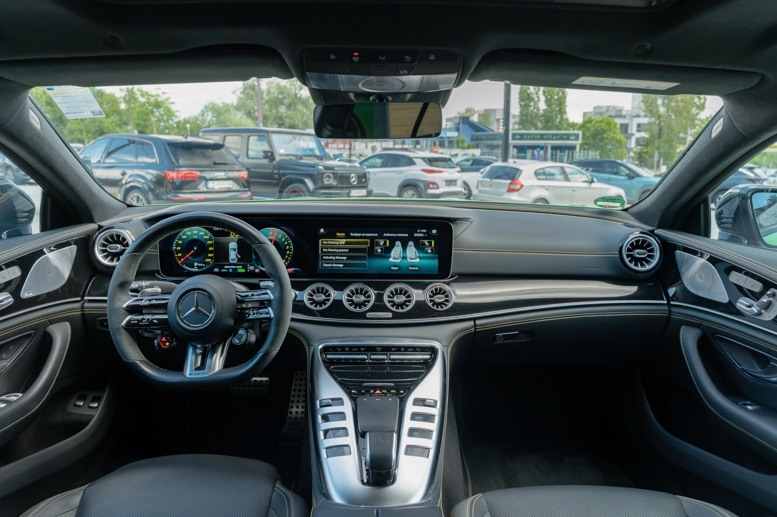 ================================================== == Употребяван автомобил. Гаранция. Лизинг. ============================================== Допълнителна информация и оборудване: ДОСТАВЯМЕ И ПО ИНДИВИДУАЛНА ПОРЪЧКА НА КЛИЕНТА! Гаранция до 10/2026г. Цена при бартер: 142, 999 евро. Специално оборудване: Спортни седалки AMG Performance Аеродинамичен комплект Racing AMG Съраунд система Burmester High-End с 3D звук Оборудване: Energizing Система за подпомагане на шофирането: Разпознаване на пътни знаци Пожарогасител Head-up дисплей (дисплей на предното стъкло) Индукционна зарядна станция за смартфон в задната част Интериорно оборудване: First-Class Fond (High Class Fond) Камера 360 градуса Керамична спирачна система (AMG) Комфортна климатична инсталация (Thermotronik 3-зони) Комфортен пакет Акустика Волан с отопление Задна седалка разделена / сгъваема Електрически спускащ/повдигащ се покрив (стъкло) Странични въздушни възглавници (Sidebag) отзад Предавател за отваряне на гаражната врата (интегриран) Сервизна система: MBUX Augmented Reality за навигация Серво затваряне на вратите Седалки отпред: климатизация Интегриран смартфон Слънчева щора на задното стъкло (механична) Допълнително оборудване: Пакет за съхранение Въздушна възглавница за водача/пасажера Атмосферно осветление (разширен обхват) Пакет AMG Dynamic Plus AMG Track Pace (APP) Аудио система Audio 20 (USB, GPS) Система за зареждане с променлив ток (AC) LED мигащи светлини с променлив светлинен сигнал DAB тунер (цифрово радио) Декоративни/орнаменти Пакет за защита срещу кражба Plus Подови прагове (AMG) с осветление Електродвигател 150 kW (хибридно задвижване) Система за подпомагане на шофирането: Agility Select / Dynamic Select (превключвател на режима на шофиране) Система за подпомагане на шофирането: активен асистент за поддържане на лентата Система за подпомагане на шофирането: асистент за дълги светлини Adaptive plus Система за подпомагане на шофирането: асистент за ограничаване на скоростта Система за подпомагане на шофирането: система за информация за трафика Live Traffic Електрически прозорци отпред + отзад Постелки AMG Задно окачване AMG Хибрид 620 kW (двигател 4, 0 л - 470 kW) Инфоразвлекателна система: Remote & Charging Services Plus Каросерия: 5 врати, Keyless Go Стартова система Коленен въздушен възглавник от страна на пътника Коленен въздушен възглавник от страна на водача Комбиниран инструмент с променлив дисплей (широкоекранен кокпит) Модул за комуникация (LTE) Подготовка Mercedes me connect Пакет за свързаност Система за въздушни възглавници за главата (Windowbag) Заряден кабел за обществени зарядни станции Заряден кабел с щепсел Волан (AMG Performance, Nappa / Dinamica) Волан с превключватели/бутони, галванизиран Светлинна сцена AMG (странични прагове с проекционна функция) LM джанти Медиен дисплей Пакет Memory Модернизация на модела с код Multibeam LED Навигационна система: навигация с твърд диск Нощен пакет (AMG) Нощен пакет II Относително филтър (OPF) Паркинг пакет Пакет за обществено зареждане Система за контрол на налягането в гумите Ниски емисии съгласно стандарт за отработени газове Euro 6d Отопляема система за чистачки Странични въздушни възглавници (Sidebag) отпред Странични прагове в цвета на автомобила Тапицерия на седалките / тапицерия: кожа Exklusiv Nappa в 2 цвята Отопление на предните седалки Специално лаково покритие AMG (Green-Hell magno) Огледален пакет Спортна изпускателна уредба (AMG Performance) Спортно шаси (AMG Ride Control +) Спортни гуми AMG Система за гласово управление с разширени функции (MBUX) Контакт (12 V) в бага
