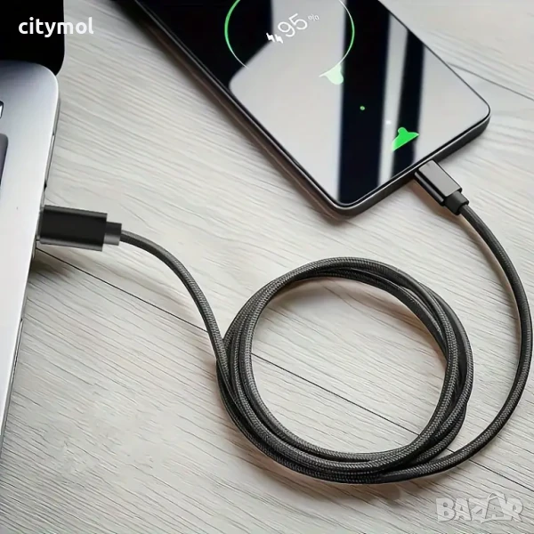 • Кабел за връзка и зареждане устройства с USB-C вход към вашия PC, лаптоп, MacBook или други устройства с USB-C