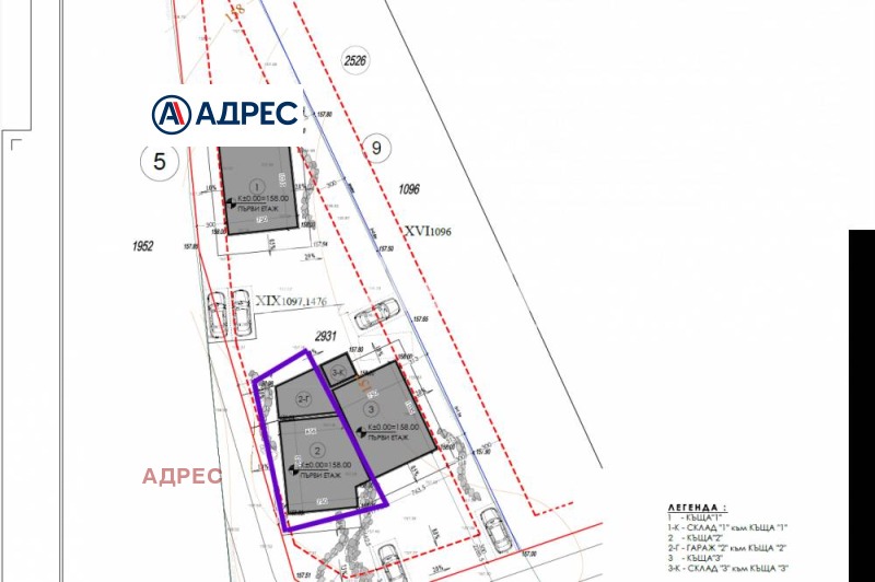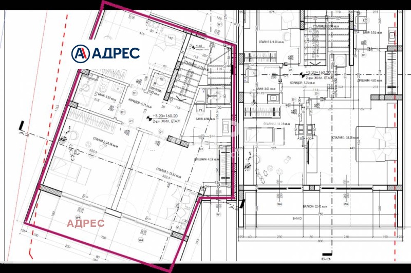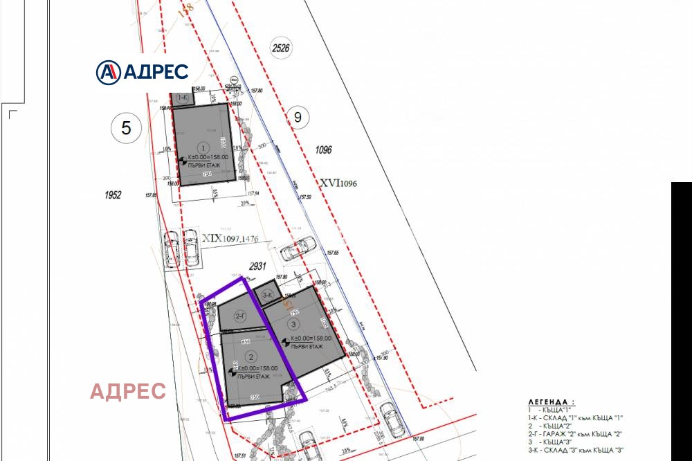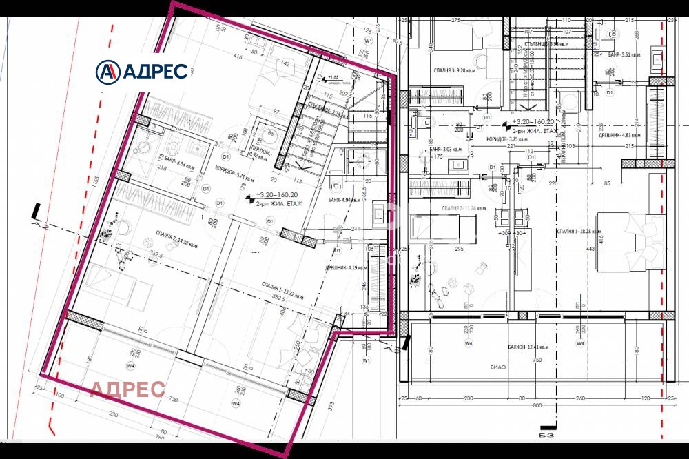 Етаж 2: три спални, една от които с дрешник и баня, втора баня, перално помещение и чудесен балкон.