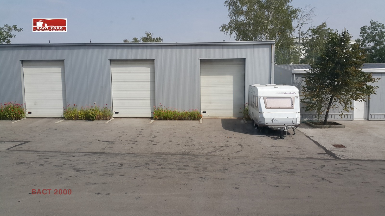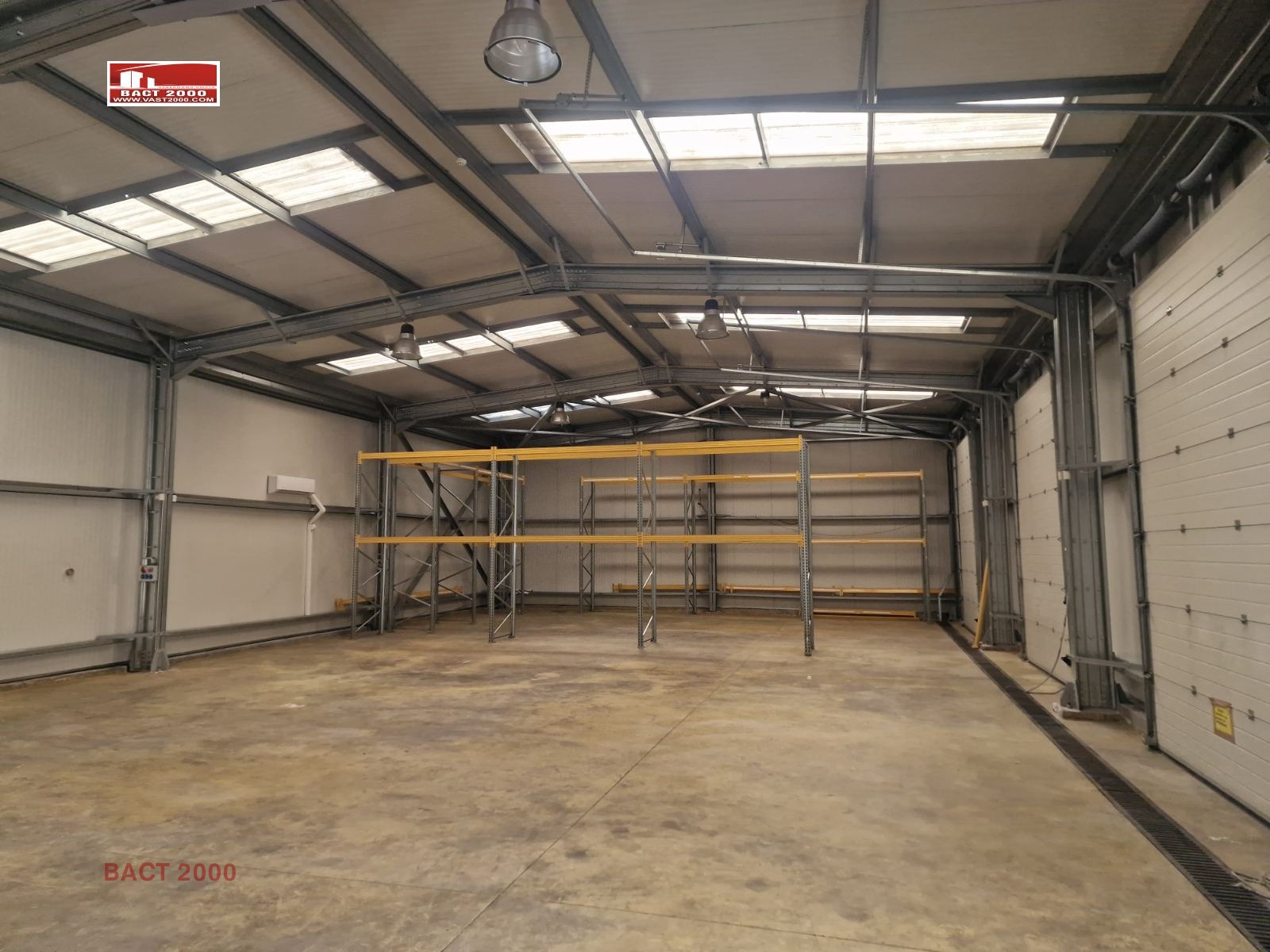 - метална конструкция с термопанел, под шлайфан бетон, естествено осветление подход от кота 0, с три броя ролетни врати.