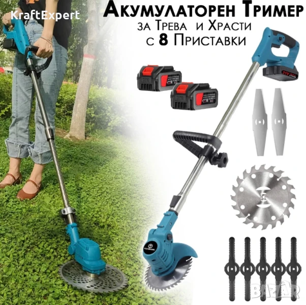 ✅ Гаранция 24 месеца✅ Батерия 21V 4Ah – мощна и издържлива✅ Лек и удобен – подходящ за прецизна работа около бордюри и огради✅ Регулируема дръжка – персонализирано удобство✅ Безкабелна работа – свобода на движение и лесна употреба навсякъдеСвобода, Мощност и Прецизност – Всичко в Един Тример!Открий новото поколение градинска грижа с акумулаторния тример 21V 4Ah – твоят надежден партньор за чиста и добре оформена градина. Забрави за кабелите, горивото и досадните шумни машини – с този тример получаваш тиха, екологична и напълно безжична работа, където и да се намираш.🔋 Издръжлива литиево-йонна батерия 21V 4Ah – за по-дълга работа без прекъсвания. Стабилната мощност ти дава увереност при всяко движение.✂️ Прецизно подкастряне около огради, стени, пътеки, бордюри и трудно достъпни ъгли – тримерът достига навсякъде.🛠️ Регулируема дръжка – за оптимален контрол, комфорт и персонализирано удобство при всяка височина и ситуация.🎯 Лек и балансиран корпус – намалява умората и позволява продължителна работа дори с една ръка.🔁 Бързо зареждане – готов за нова мисия само след кратка почивка.♻️ Екологично решение – без вредни емисии и шум, подходящ за работа дори в близост до деца и домашни любимци.💼 Идеален за:• Поддържане на малки и средни тревни площи• Работа в градини, вили, дворове и около постройки• Точна поддръжка на краища и ръбове• Всеки, който търси комфорт, ефективност и мобилност в едно устройство🎁 Комплектът включва:✔