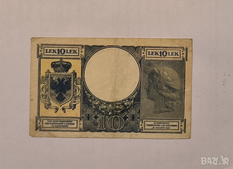 Албания 10 лек 1940 година, снимка 1 - Нумизматика и бонистика - 50548841 Албания 10 лек 1940 година, снимка 2 - Нумизматика и бонистика - 50548841 1/2