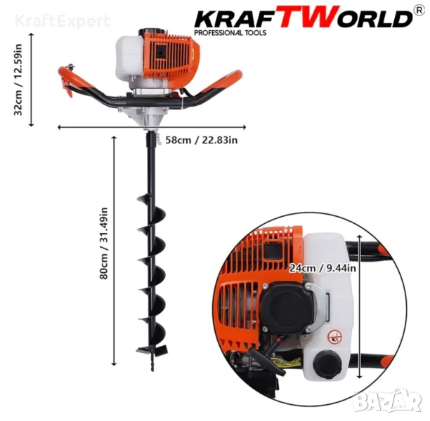 Бензинов Свредел KraftWorld – Градински Свредел с Двутактов Мотор
