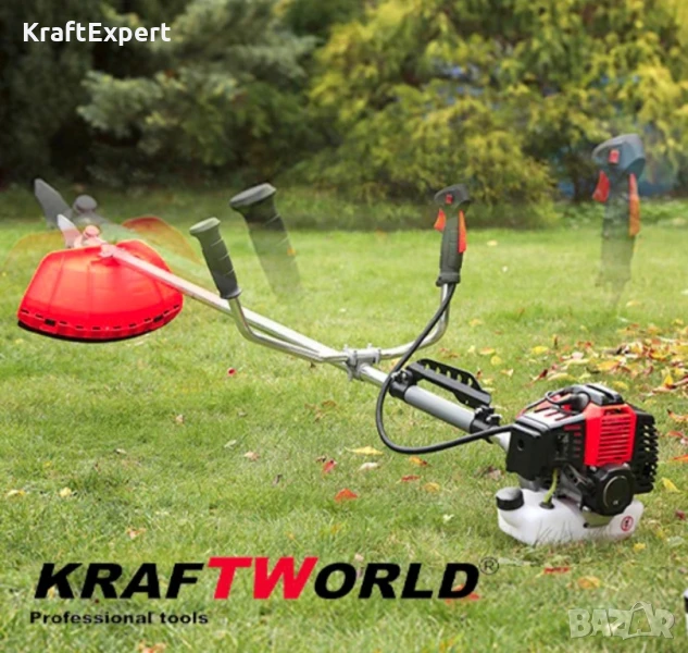 бензинов тример, който да се справя с трева, бурени, храсти и дори дървовидни стебла, KraftWorld е идеалният избор за вас!Този бензинов тример с мощност 6 к.с. и двигател 74 куб. см. е създаден за интензивна работа и е подходящ както за професионална, така и за домашна употреба. С неговата ергономична ръкохватка и мултифункционални контроли косенето става лесно, удобно и без излишни усилия.Освен стандартните аксесоари, този комплект включва и ексклузивен ПОДАРЪК – градинска фреза за бензинов тример! С нея можете да разрохквате и подготвяте почвата за засаждане, което прави този тример още по-функционален.🔹 Защо да изберете бензинов тример KraftWorld?✔ Изключителна мощност – 6 к.с. и 8500 об./мин. за справяне с гъста растителност✔ Голям резервоар – 1,2 л – позволява дълга работа без чести зареждания✔ Удобен и лесен за управление – темпомат за постоянна газ и ергономична ръкохватка✔ Подходящ за тежки натоварвания – коси трева, бурени и реже храсти с дебелина до 7 см✔ Комплект от 9 аксесоара – всичко необходимо за работа още от първия ден🔹 Комплектът включва:✅ Кордова глава – за стандартно косене на трева✅ Резервна корда – за дълготрайна употреба✅ Тризъбен метален нож – за по-гъста растителност✅ Циркулярен диск – за храсти и дървовидни стебла✅ Професионален самар – осигурява комфорт при продължителна работа✅ Предпазни очила – защита за вашите очи по време на работа✅ Ръкавици – за удобство и безопасност✅ Инструменти за поддръжка – всичко необходимо за сглобяване и поддръжка✅ Туба за горивна смес – за лесно и точно приготвяне на сместа🎁 ПОДАРЪК – Градинска фреза за бензинов тример!С нея можете да обработвате почвата лесно и ефективно, като ширината на фрезоване е 30 см, а дълбочината – 10 см. Подходяща е за бензинови тримери със шлиц 9 и квадратен захват.🔹 Технически характеристики на бензиновия тример:Тип двигател: Бензинов, двутактов, въздушно охлажданеОбем на двигателя: 74 куб. смМощност: 4,5 kW / 6 к.с.Обороти: 8500 об./мин.Горивна смес: 1 л бензин A95H + 30 мл двутактово маслоОбем на резервоара: 1.2 лНиво на шум: 105 dBНиво на вибрациите: Ляво – 2,8 м/сек., Дясно – 2,4 м/сек.Диаметър на тръбата: 26 ммИзберете надеждност, мощност и прецизност с KraftWorld!