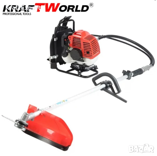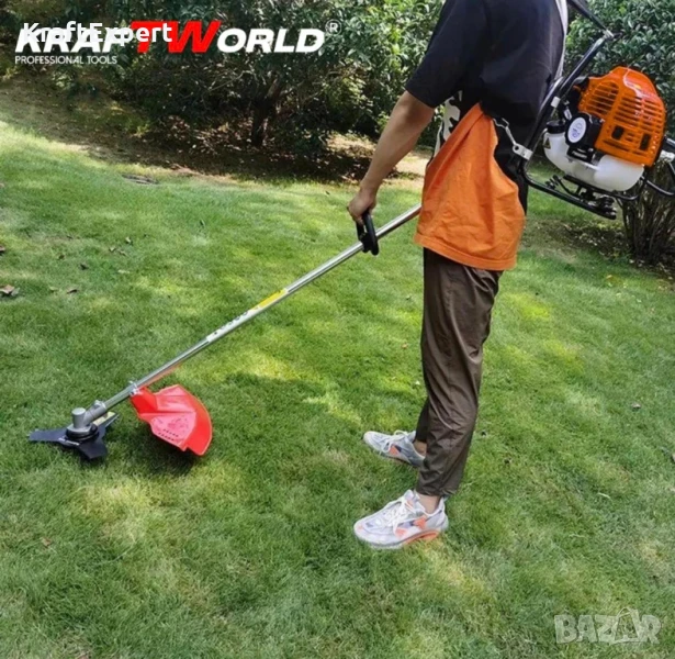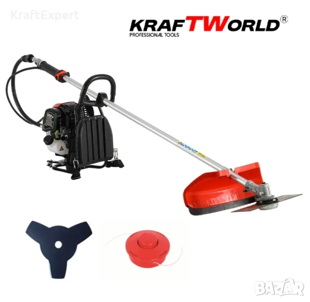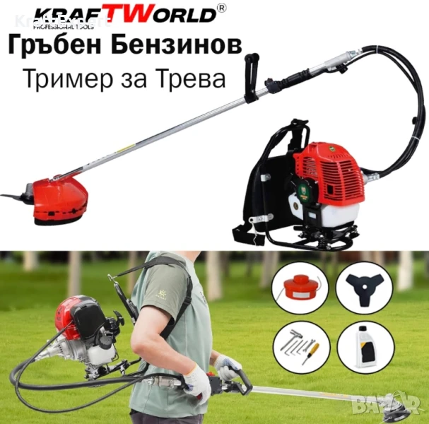 Гръбен бензинов тример за трева KraftWorld + Метална Верижна Глава