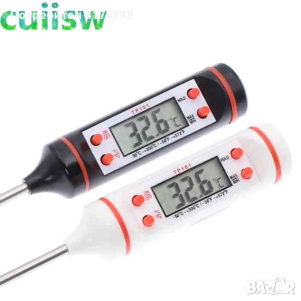 на включване/изключване, степен по Целзий / Фаренхайт и бутони за задържане.