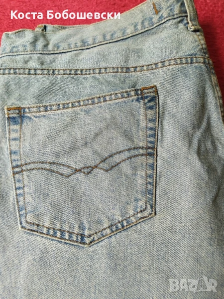 Продавам страхотни мъжки дънки, светло син цвят, 100% памук, в използвано добро състояние, с копчета. Ще станат на мъж висок около 190см. и нагоре. Заслужават си. Размери както следва, талия 106см, ханш 126см, дължина на крачола от към чатала 88см, дължина на крачола от колана 115см. Дънките си заслужават!