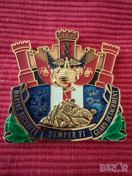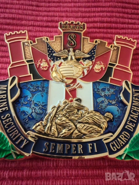 Отряд за морска охрана на USMC MSG София България Challenge Coin, 8 Region в отлично състояние, няма забележки. Еконт, Спиди, лично предаване. Телефон за връзка 0885776829.