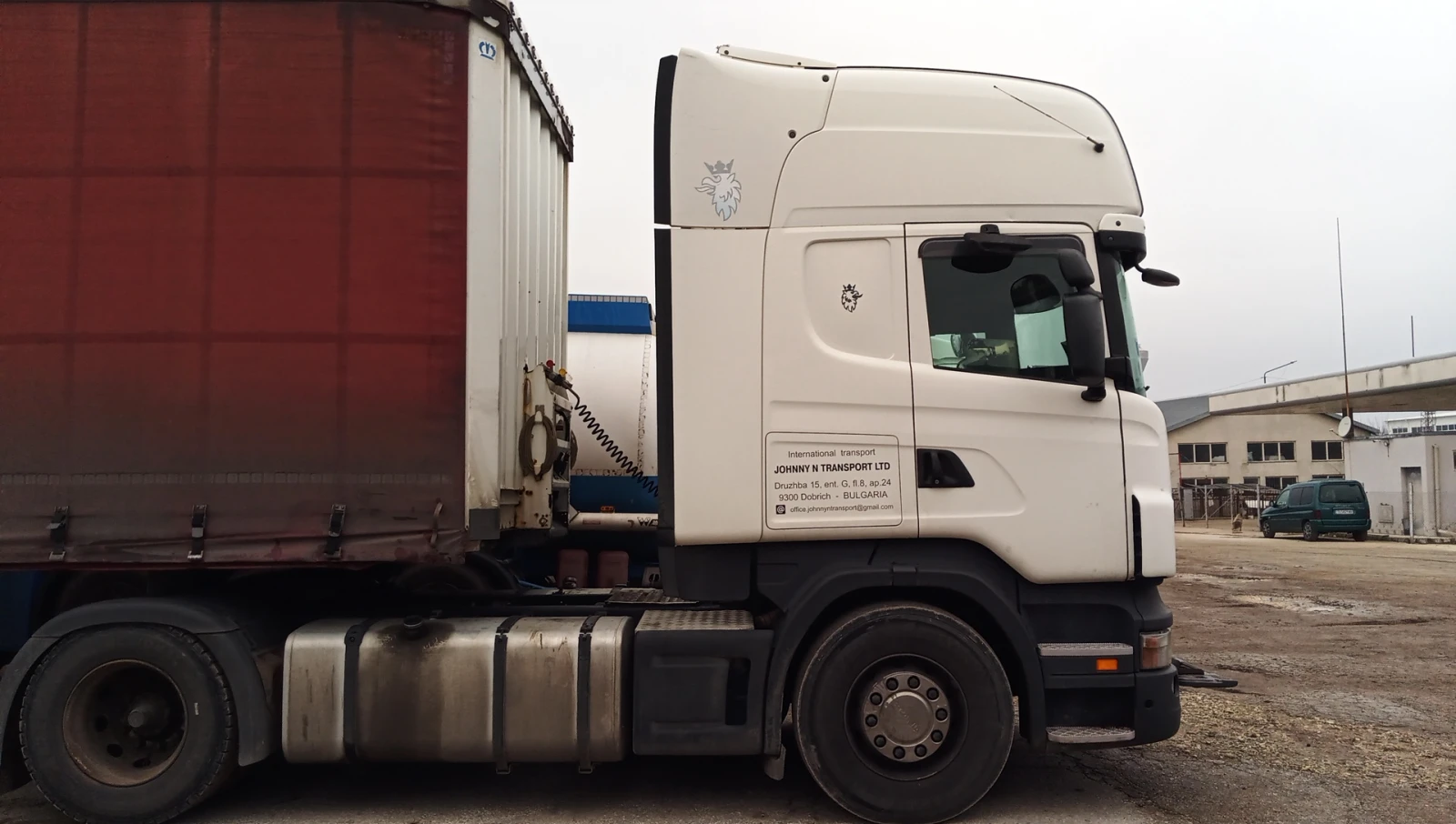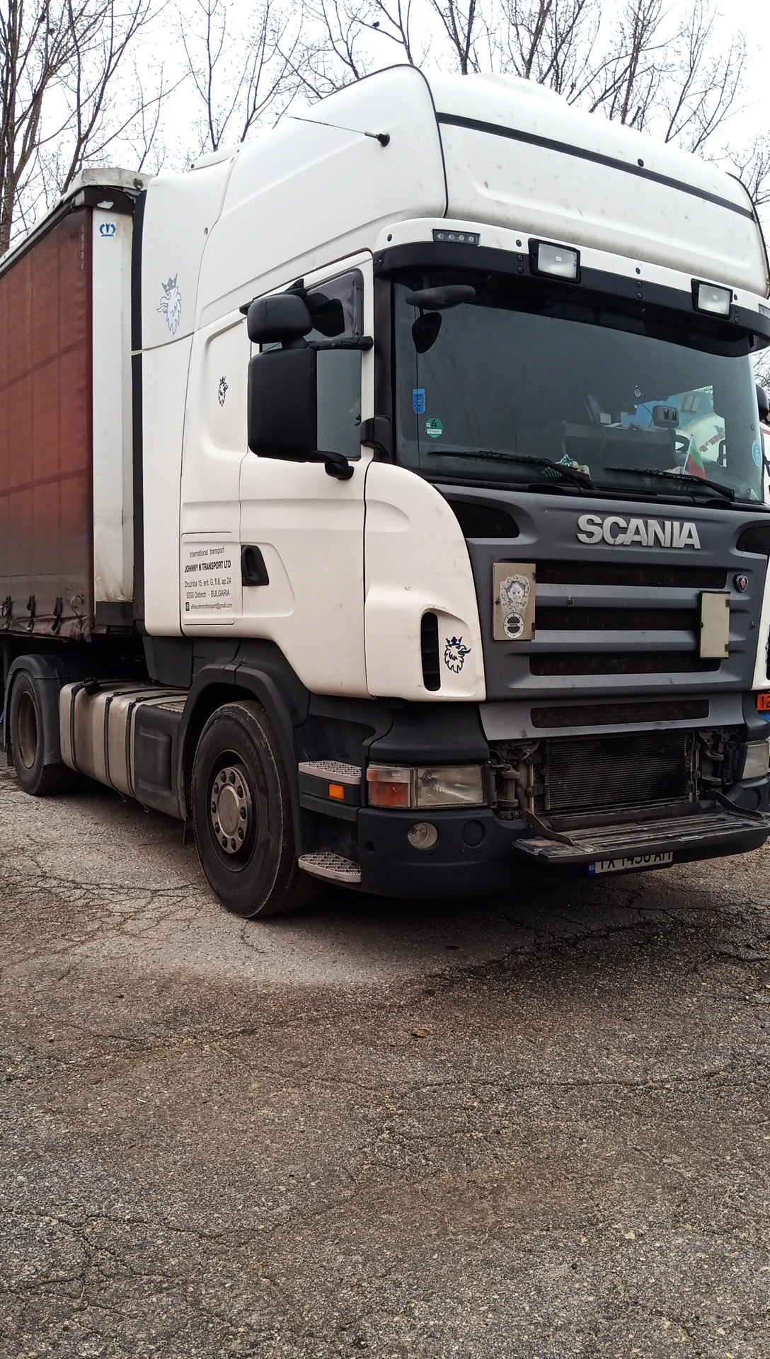 Композиция Scania R440 2009+Krone 2012 Opticruise със съединител. Евро 5 без АдБлу. 1400l резервоари, ретардер Последните месеци са сменени: Нов смарт 2 тахограф, Нови крайна тръба на ауспуха и тази преди катализатора, Нови акумулатори. Последния месец 4 рециклирани дюзи, чисто нова оригинална водна помпа Scania. Основни и биелни лагери са сменени на 1092848км. Съединител с горна и долна помпа на 1105505км. Компресор на климатика сменен на 1140061км.