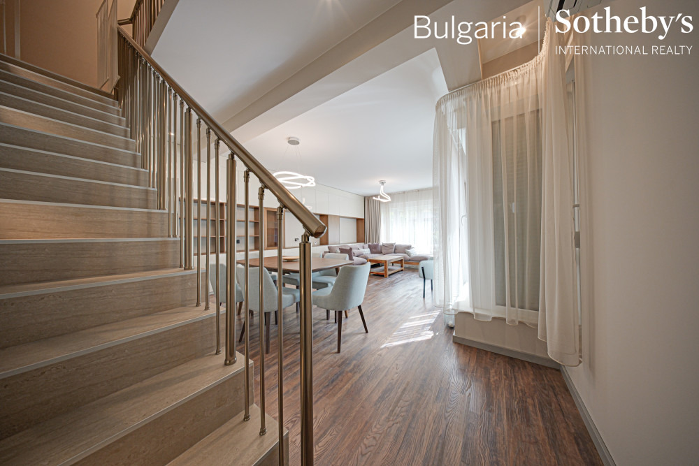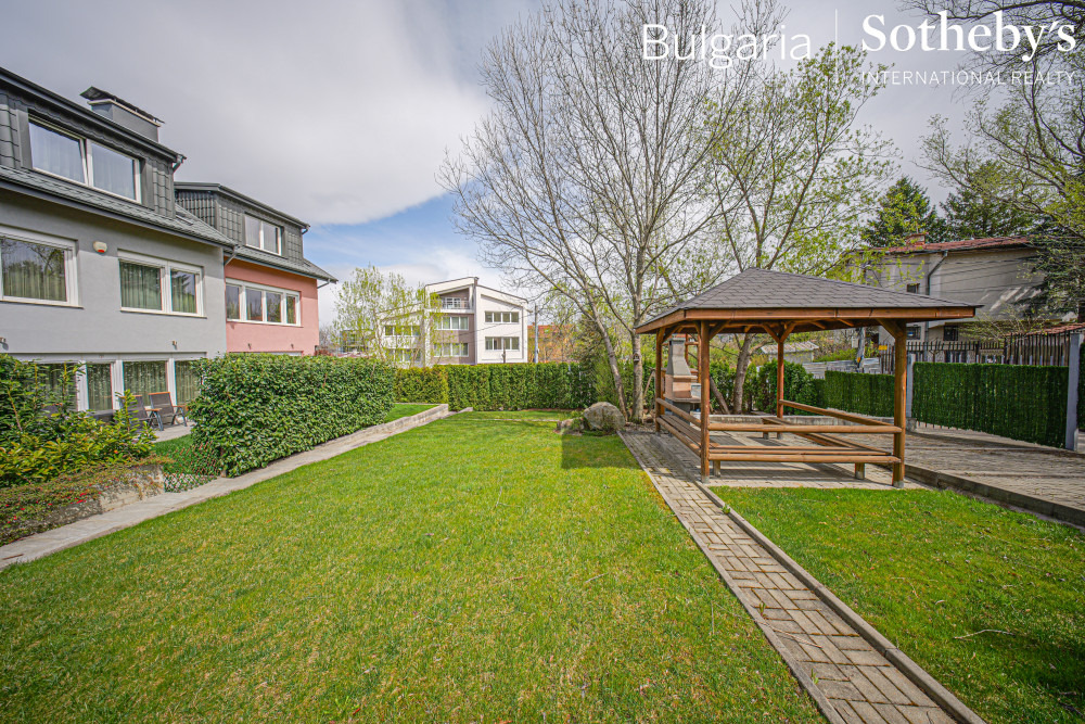 BULGARIA SOTHEBY’S INTERNATIONAL REALTY има удоволствието да Ви представи изключително добре поддържана и напълно обзаведена къща, разположена в един от най-престижните и зелени райони на София. Имотът съчетава уют, функционалност и стил, като предлага идеални условия както за семейно обитаване, така и за спокойна работа от дома.