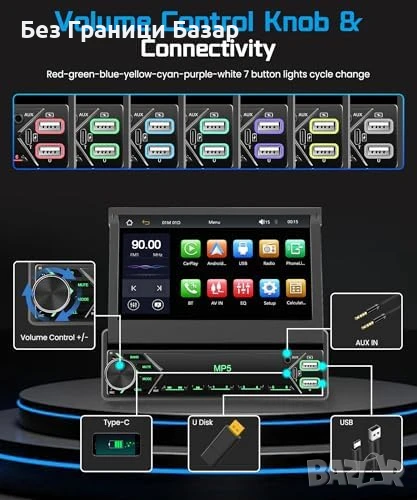 Нов 1 DIN авто радио DAB+ 7" дисплей CarPlay Android + камера кола автомобил