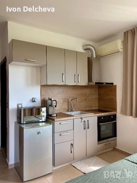 ✔️ Обзаведено с всичко необходимо – спалня, кухненски бокс (хладилник, котлони, микровълнова, кафемашина, посуда)