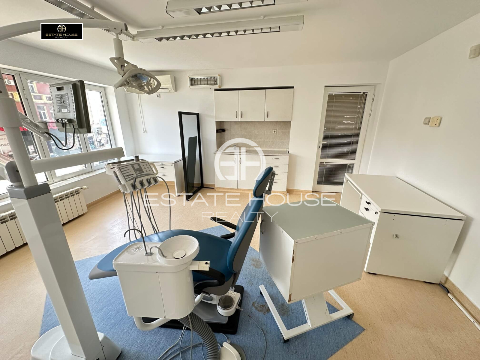 Estate House Realty отдава под наем просторен офис, подходящ за зъболекарски кабинет, медицински център или друг тип бизнес, в един от най-атрактивните и комуникативни райони на София кв. Оборище. Имотът се намира в непосредствена близост до метростанция Театрална , 17-то ДКЦ, парк Заимов , множество спирки на градския транспорт и разнообразие от търговски обекти.