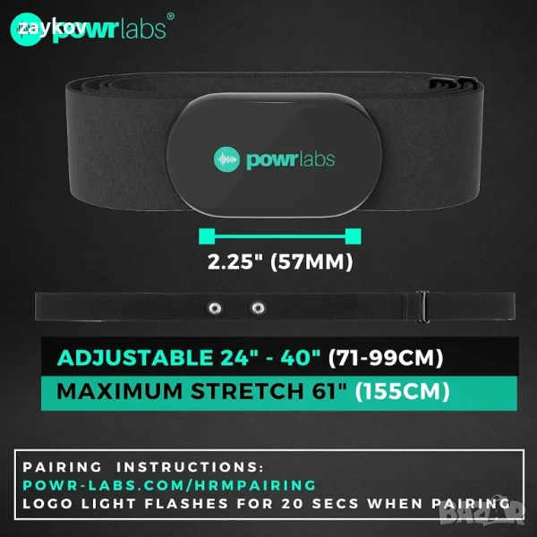 Powr Labs Bluetooth и ANT+ пулсомер с колан за гърди, съвместим с Polar, Garmin, Peloton