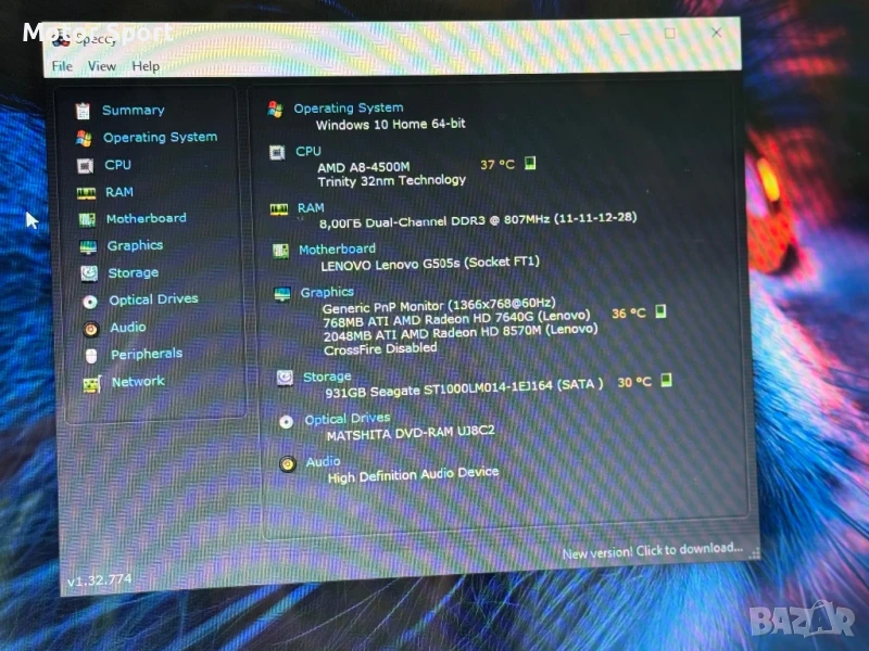 Лаптоп Lenovo G505s AMD A8/1000GB/8RAM/2GB Radeon/15,6Инча. → Обява 50551701