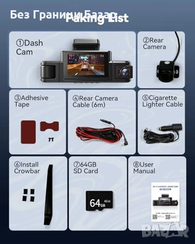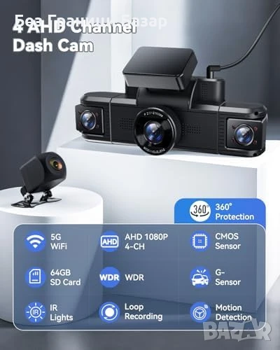Нова Камера за кола 4CH 360° WiFi IR нощна визия + 64GB Dashcam автомобил
