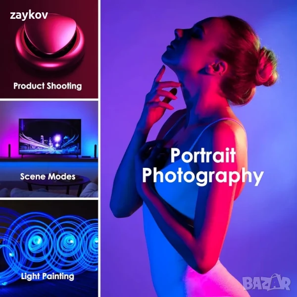 【Тръба с мека светлина и дълготрайно работно време】Тази RGB светлинна пръчка използва усъвършенствана гладка светлинна тръба, която гарантира равномерен повърхностен LED светлинен източник и позволява по-равномерно разсейване на по-меката светлина. Зареждането на това фотографско осветление отнема само 3-4 часа, но максималното време за работа може да бъде от 2 до 18 часа. Включеният в комплекта статив (може да се използва като дръжка) позволява не само поддържане на тръбата на масата, но и работа с една ръка.