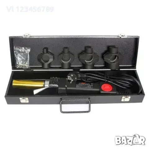 Заваръчен комплект за полипропилен 1850W за запояване на полипропиленови тръби и фитинги. Моделът е с кръгъл нагревател. Заварява 0 – 300 градуса.Регулацията на температурата е електронна.