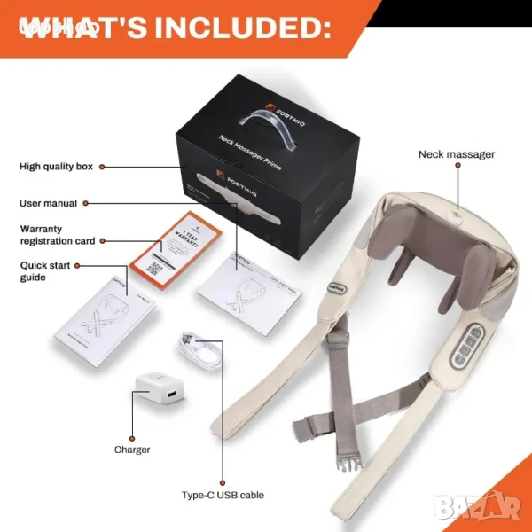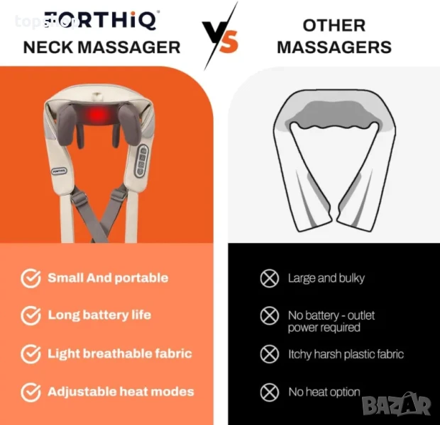 НОВ масажор за врат FORTHiQ - облекчаване на болката в дълбоките тъкани, регулируема топлина...