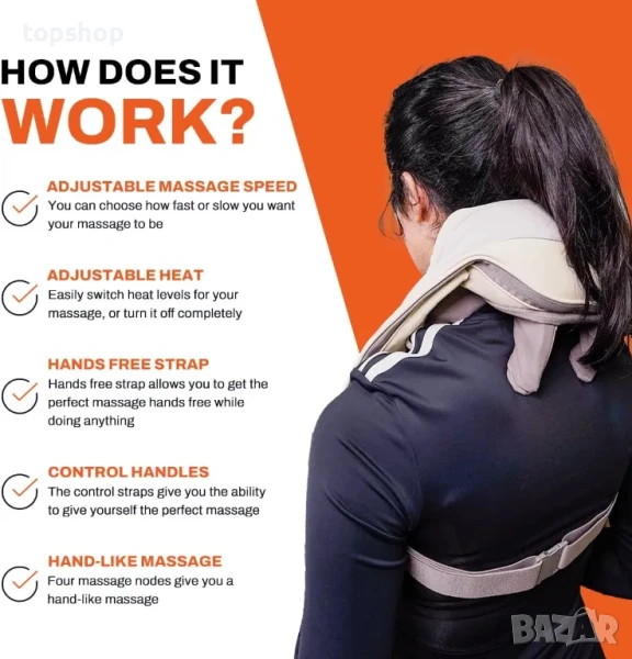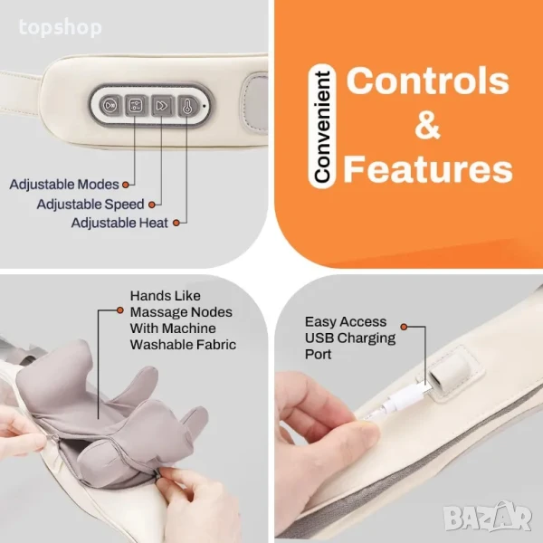 Каишка за свободни ръце: Нашият масажор включва каишка за свободни ръце, за да ви позволи да получите удобен масаж, докато продължавате с ежедневните си дейности.