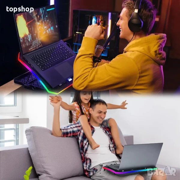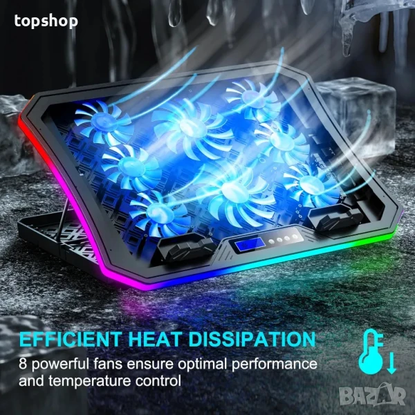 НОВА, тествана охлаждаща подложка за лаптоп с RGB светлини MOOJAY, 8 тихи вентилатора...