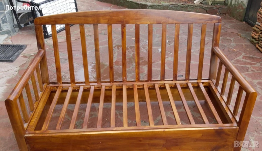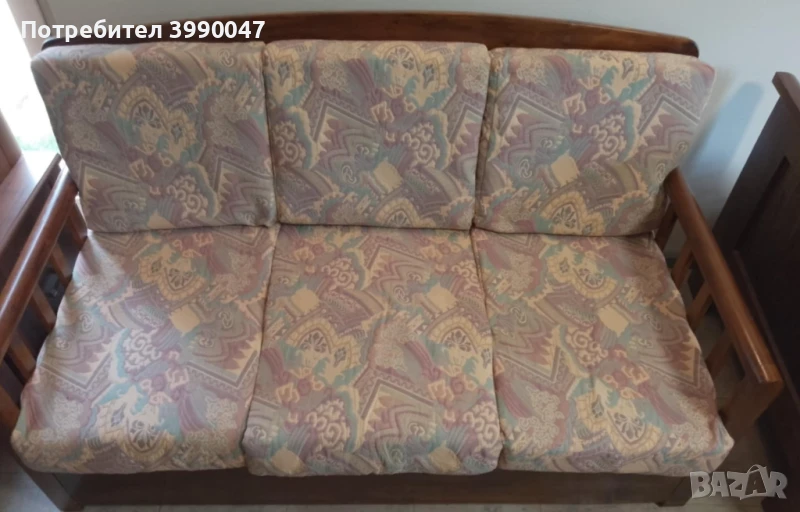 Диван тройка. Ръчна изработка. Масивен е от орех и много запазен. Не се разтяга. В комплект е с друг диван двойка разтегателен. Намира се в гр. Банкя.