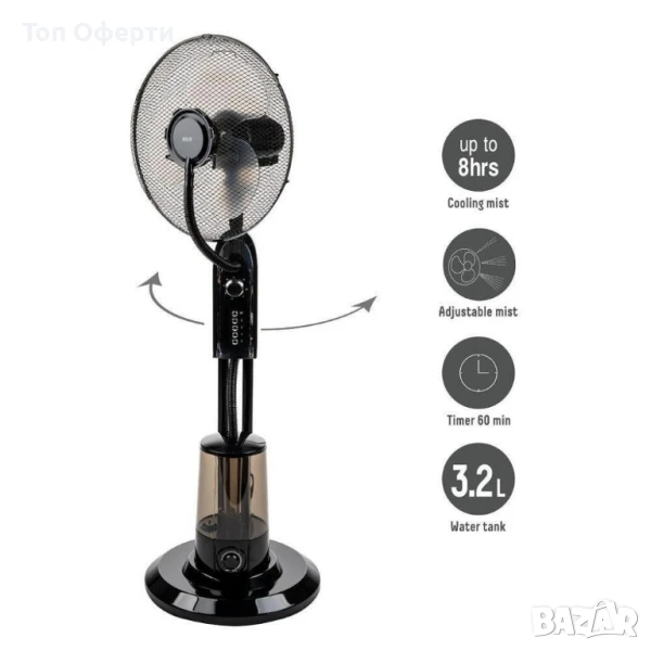 Вентилатор с водна мъгла 16", 75W, таймер, мехн. упр-е