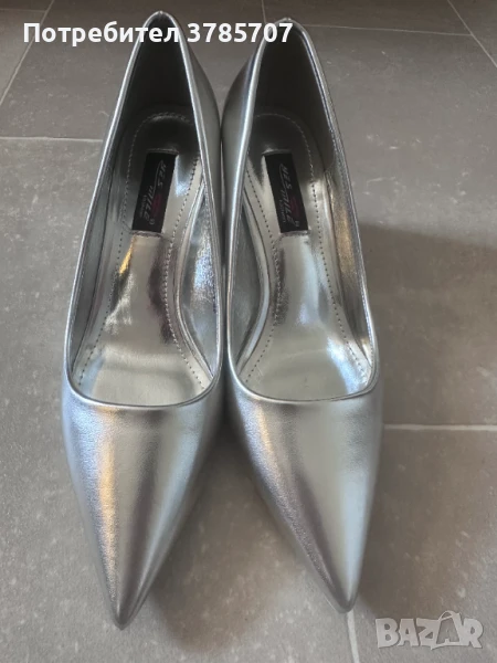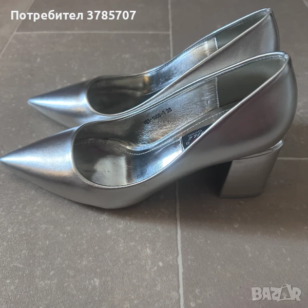 Елегантни дамски обувки на ток в сребърен цвят – перфектното допълнение към всяка стилна визия. Обувките са чисто нови и никога не са носени, запазени в отлично състояние. Сребристият цвят придава изискан и модерен акцент, който лесно се комбинира както с ежедневни, така и с официални тоалети. Изключително удобни и стабилни.