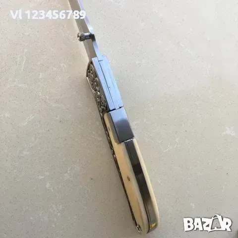 Красив сгъваем нож от добра инструментална стомана с гравирана дръжка комбинирана с чирени - цвят слонова кост